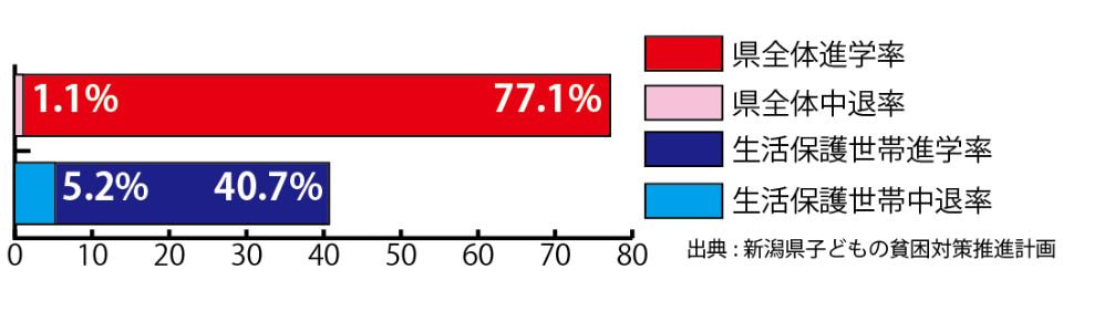 低所得世帯 進学率 40.7% 高校中退率 5.2%